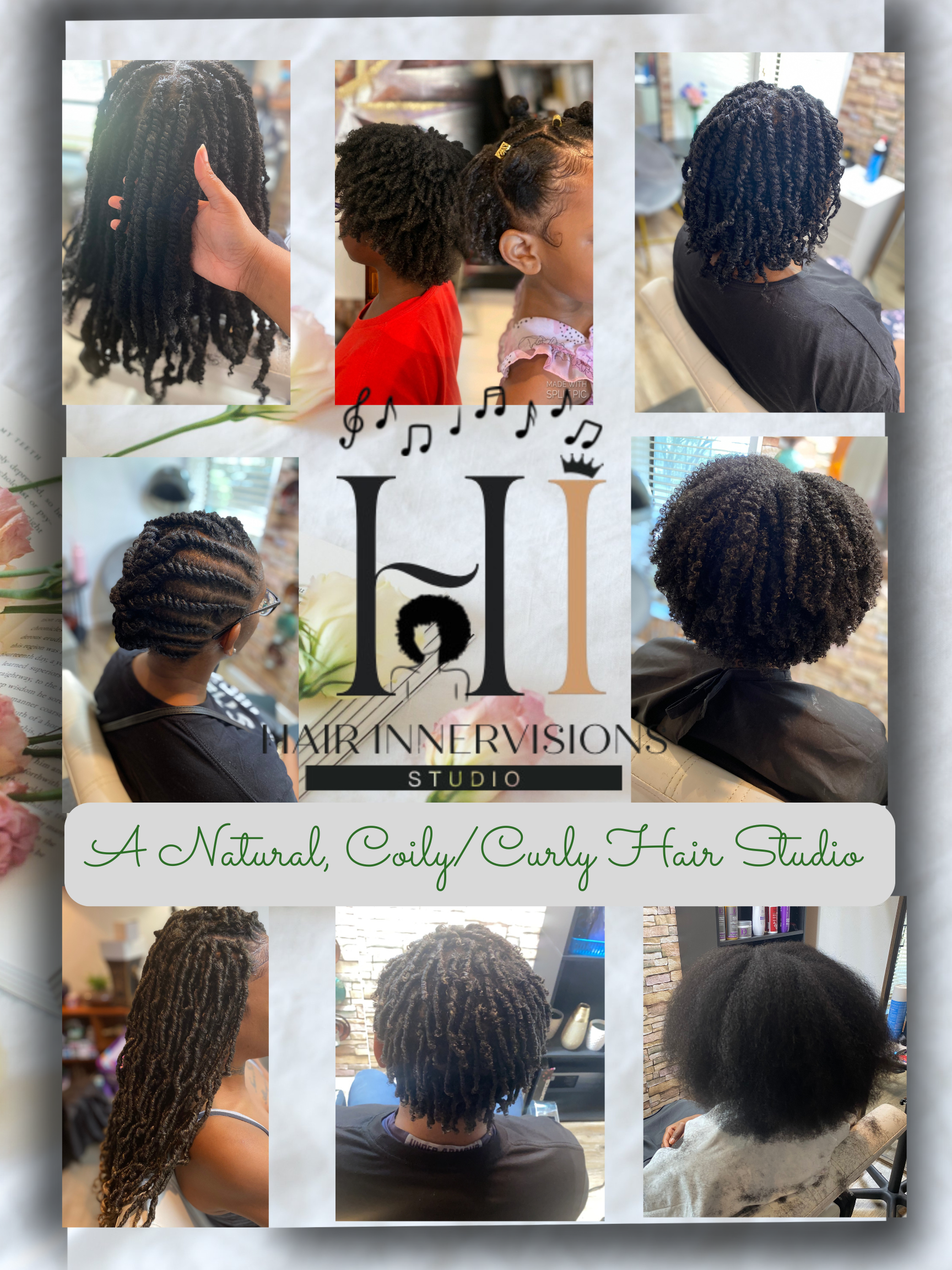 Hair Innervisions Studio is rooted in intentional care, prioritizing the health, integrity, and longevity of every strand we touch. We honor culture by celebrating the beauty, history, and science of Natural Curly hair in all its forms. Our work is guided by unwavering commitment to excellence, education, and personalized service. Through meaningful relationships and shared growth, we cultivate a strong community where every guest feels seen, valued, and empowered.