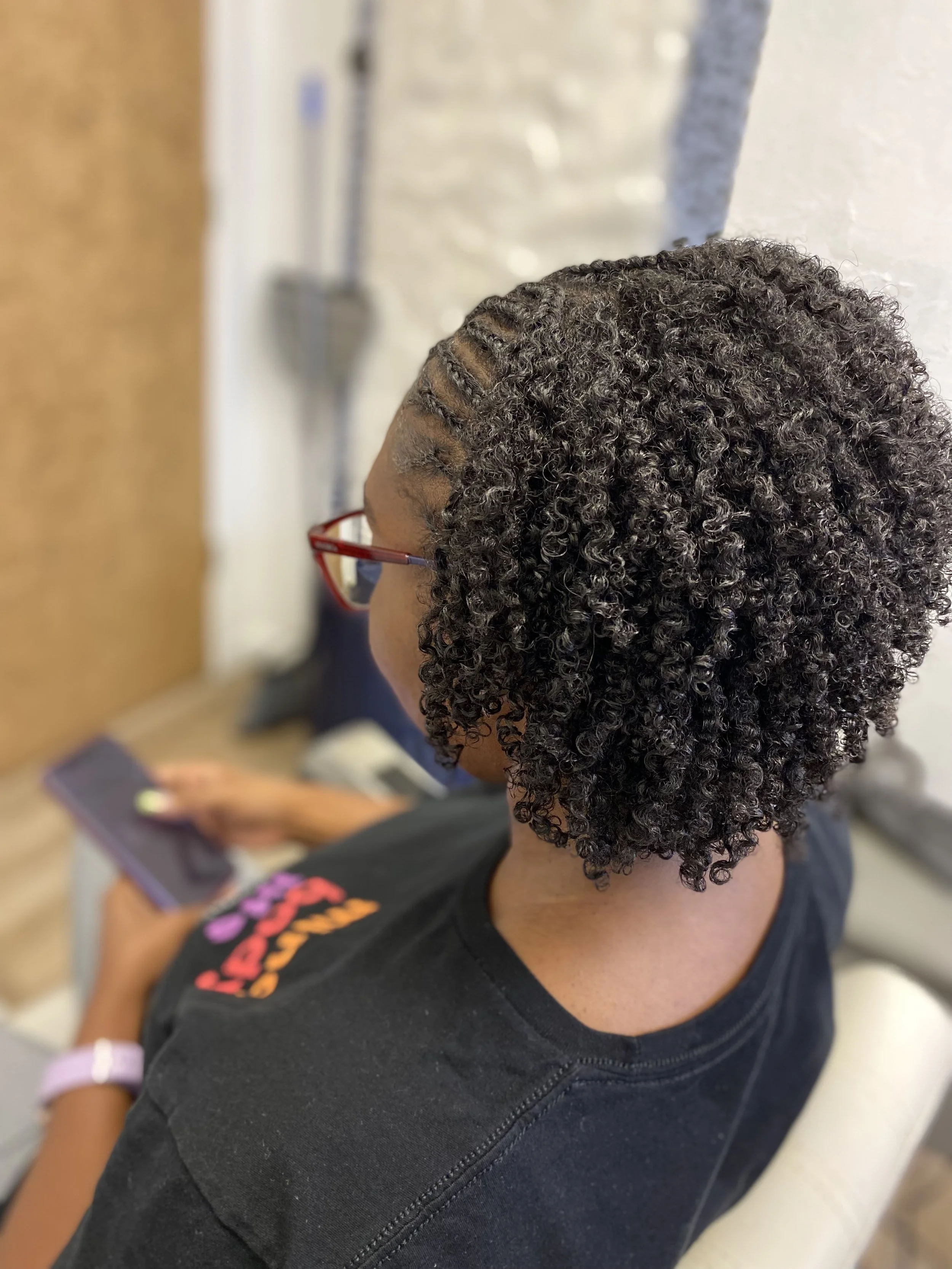 For Return Clients. Shampoo, treatment, haircut & style. Nothing better than getting your hair taken care of, while also leaving with a beautiful style. Choose from two strand twists, twist outs, coils, wash n gos, or wet sets like flexi or perm rods.